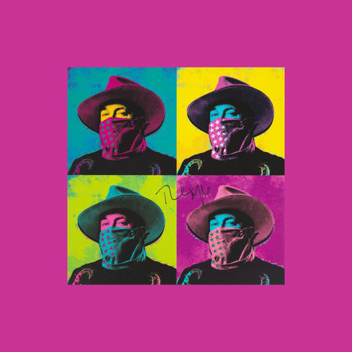 "The Mavericks are a band full of color. A band who create BIG, colorful music. A band with colorful personalities. For my love of POP Art and living in NY, it seemed appropriate to give a band piece of art something vibrant and saturated with solid blocks of color. Heavily under the influence of the NY artists Lichtenstein, Warhol and with the wonderful color sensibilities of Rothko, I used a hand painted stencil technique to create this piece entitled CORE FOUR. I wanted each individual portrait to capture something of each personality, directing the viewer to the focal point of the eyes by giving each member a different colored pair of sunglasses. I hope you enjoy the art!" - Nick Farrow.