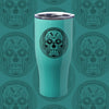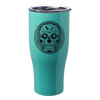 This stainless steel teal tumbler features the black Mavericks' Skull.